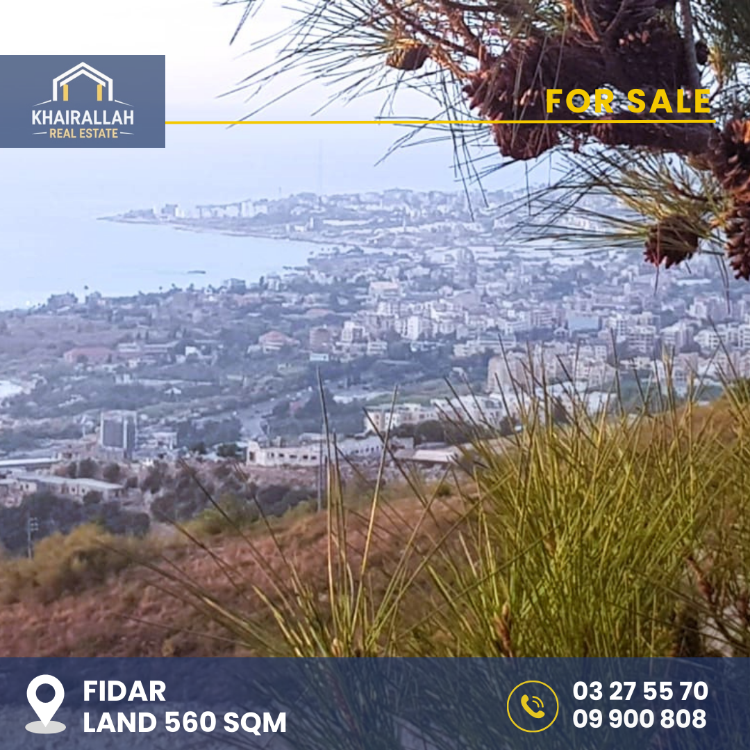 Land in Fidar, Jbeil District 📐Area: 560m2 📏Investment: 20/40 💲 Selling Price: 250,000 $ 🌅 Outstanding mountain & sea view 📞 Call now: 03 275 570